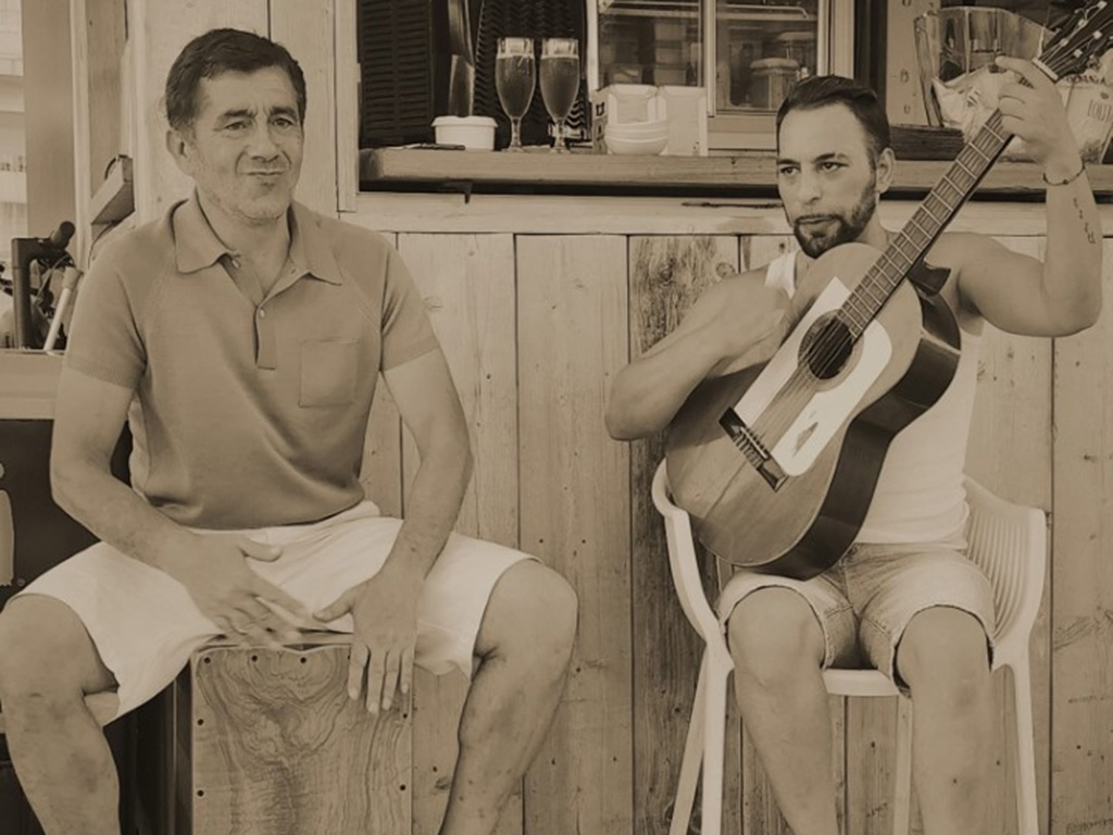 Esencia Flamenca está formada por Diego Alanzabes (Cajón) y Teo Navarro (Guitarra y Voz).