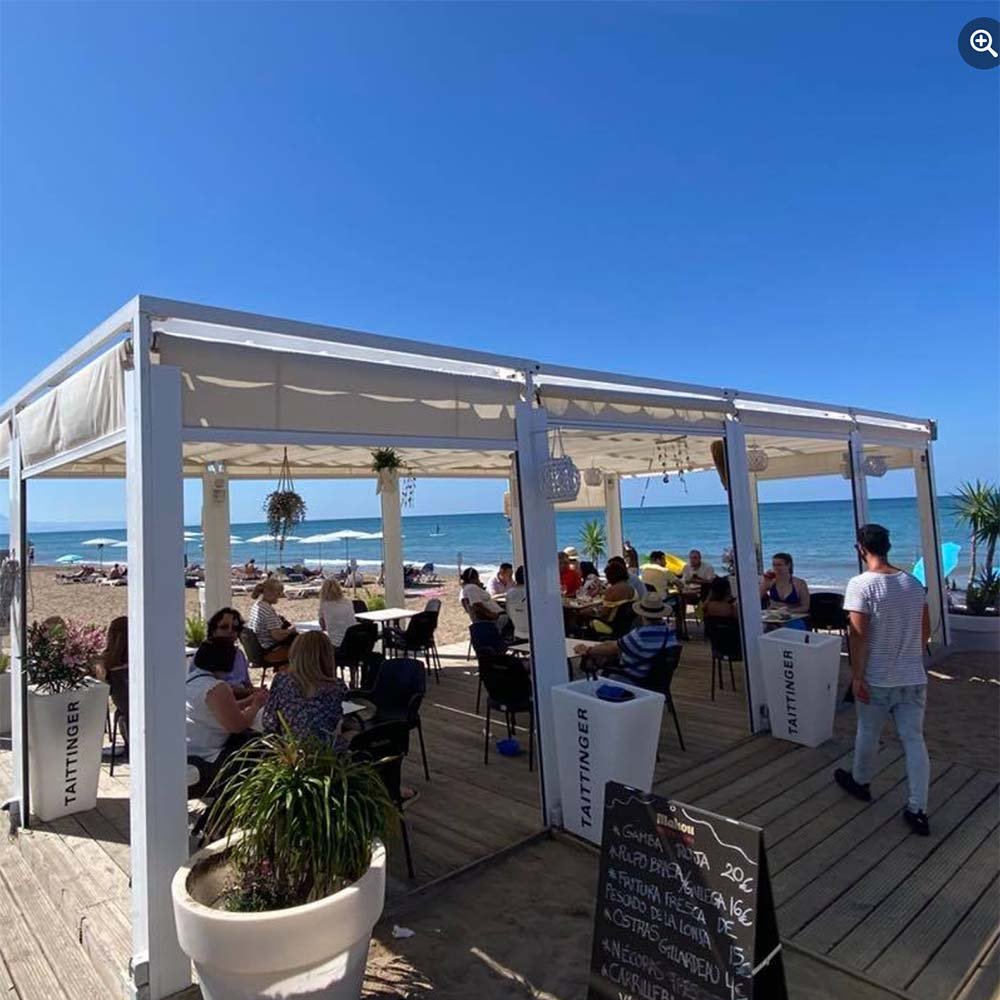Eat and drink on the beach. 20m from the water this is a great location for kids and grown ups alike. Fresh fish every day from May to October and the great location on 2 km of pure sandy beach makes this a favourite. Normally drinks only stops around 1pm and 7pm with food orders only thereafter, so getting a meal is usually easy if you arrive early. The fish is delivered daily from the market and can range from mussels to lobster depending on availability. Plastic glasses are an unfortunate necessity.