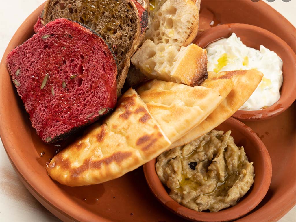 Pan casero recién horneado y una talentosa versión de las tradicionales tapas griegas.